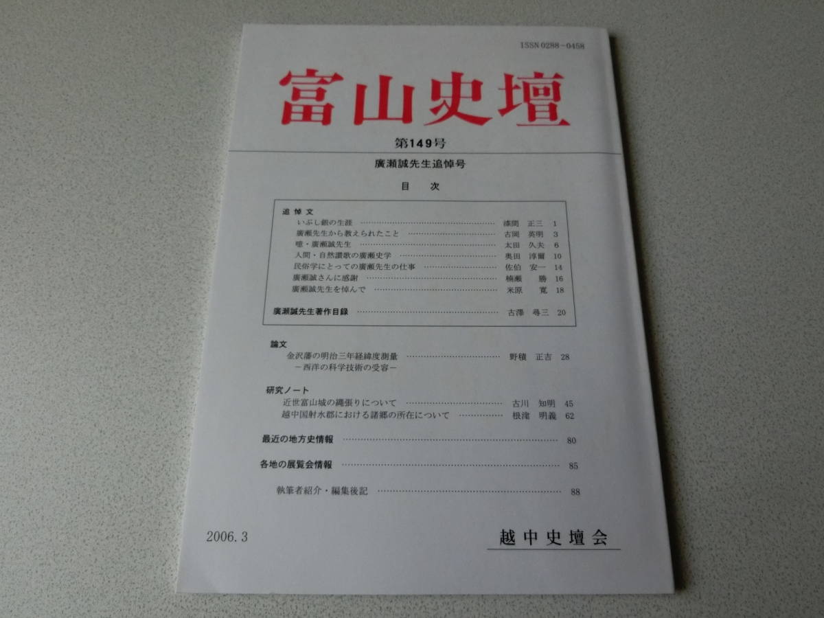 - 富山史壇 149号 廣瀬誠先生追悼号