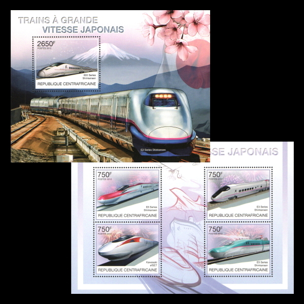 - ■中央アフリカ切手 2012年 日本の鉄道 / 新幹線 シート+4種シート