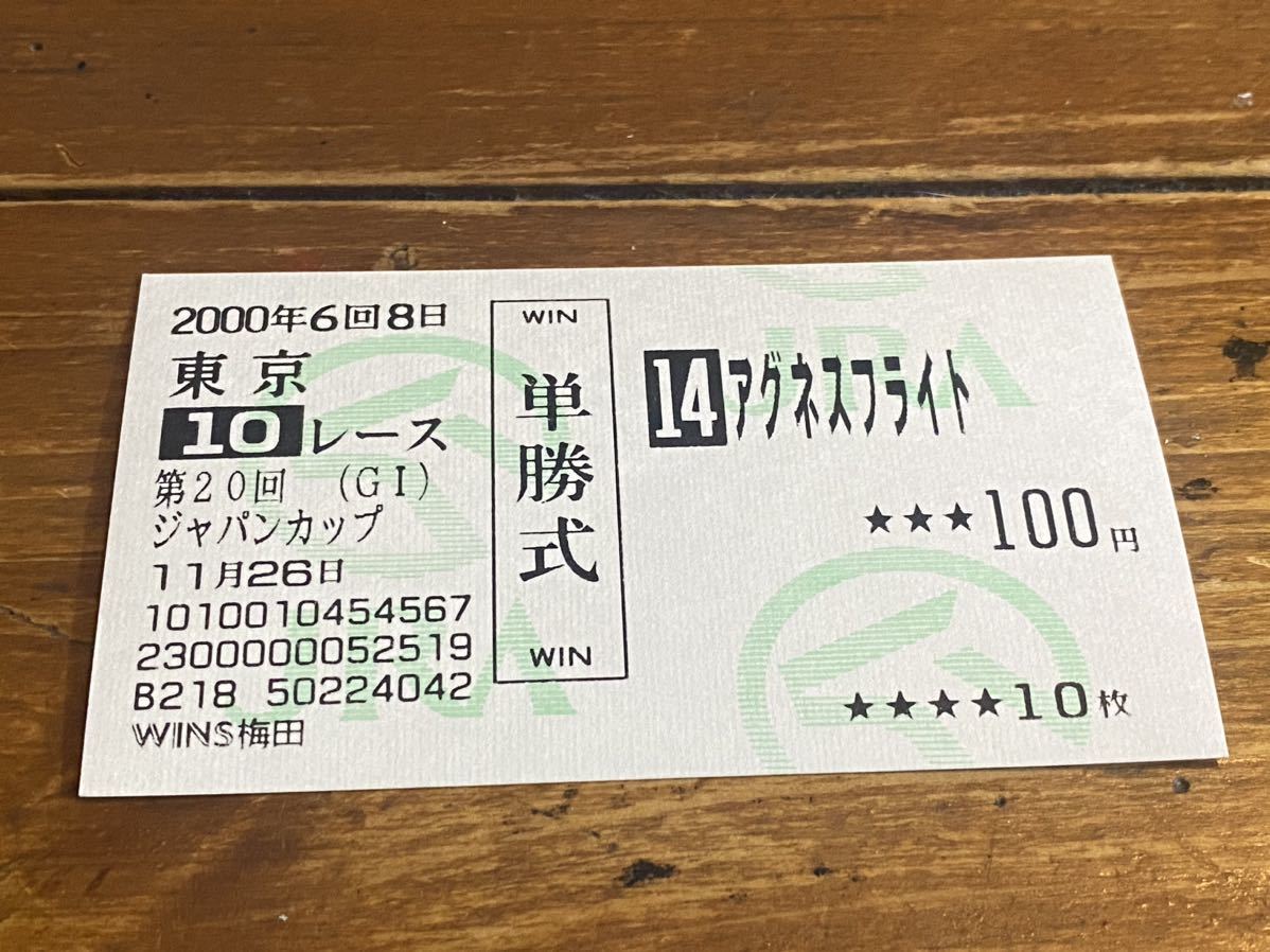 - 【003】競馬 単勝馬券 旧型 2000年 第20回ジャパンカップ アグネスフライト WINS梅田