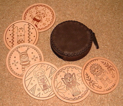 『FUNNY』オリジナルの【ホピ・カチナ】デザインの≪サドルレザー製 コースター≫が全6種類と、