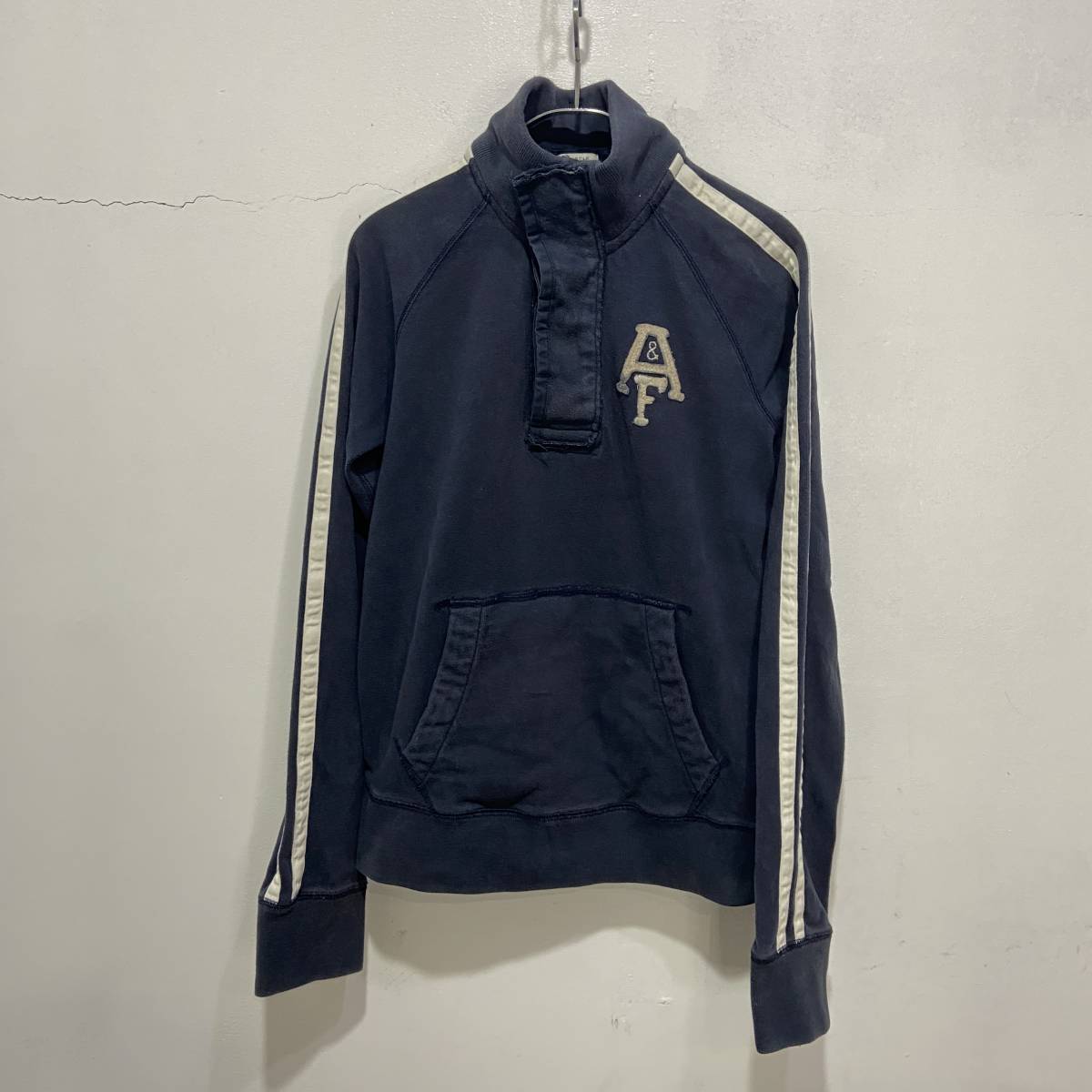 > 送料無料☆Abercrombie&Fitch☆アバクロ☆ハーフボタンスウェット☆スリーブライン☆ワンポイントロゴ☆ネイビー☆S☆A24M