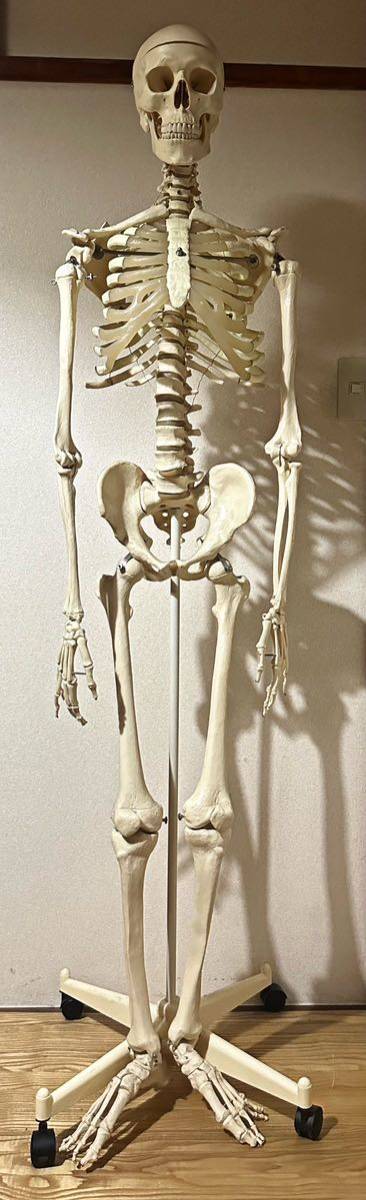 - 等身大 人体 骨格 全身 模型 アンティーク 直立 キャスタースタンド付き 頭蓋骨 骸骨 骨 実物大 ディスプレイ オブジェ スカル
