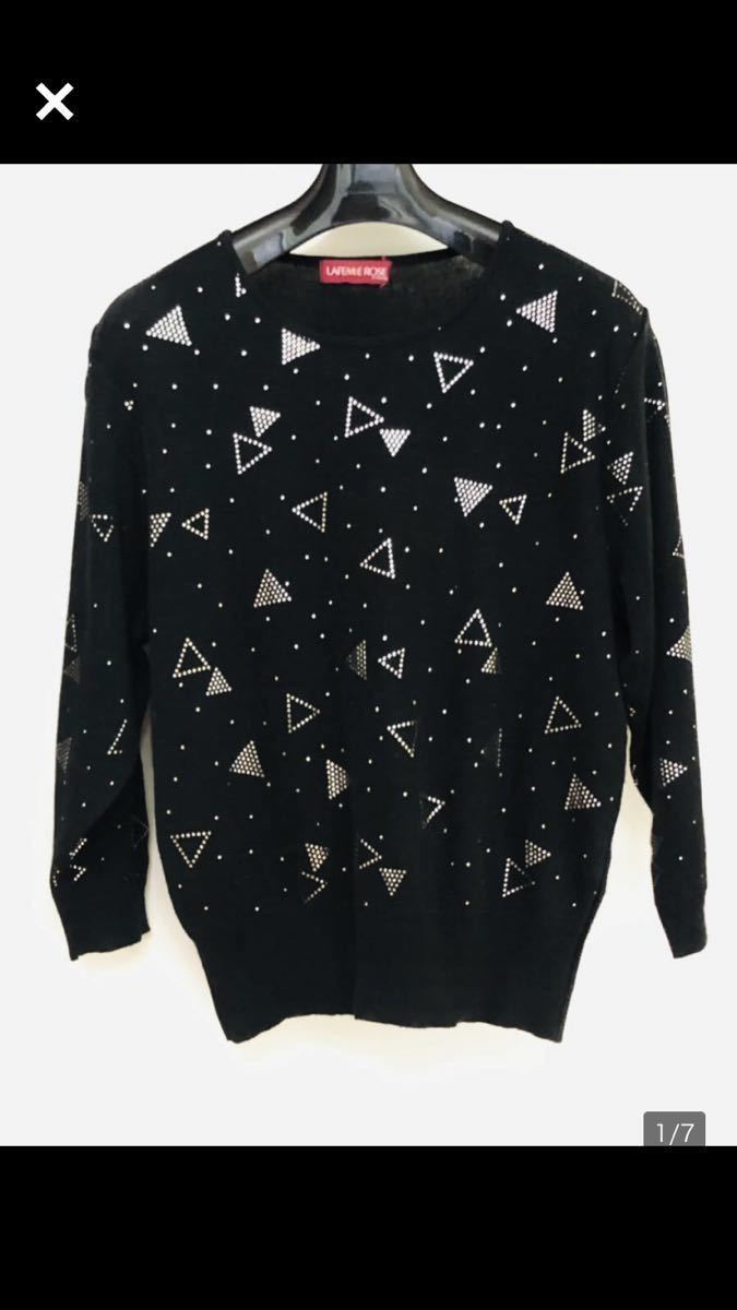 - Mサイズ♪日本製・黒 七部袖 ニット セーター キラキラ銀ラバー