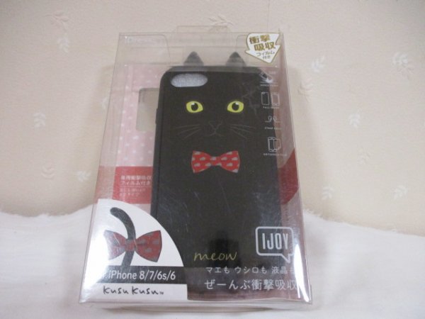 > ◆ iPhone 8 / 7 / 6S / 6 用 ケース 衝撃吸収 ◆サンクレスト meow 黒猫