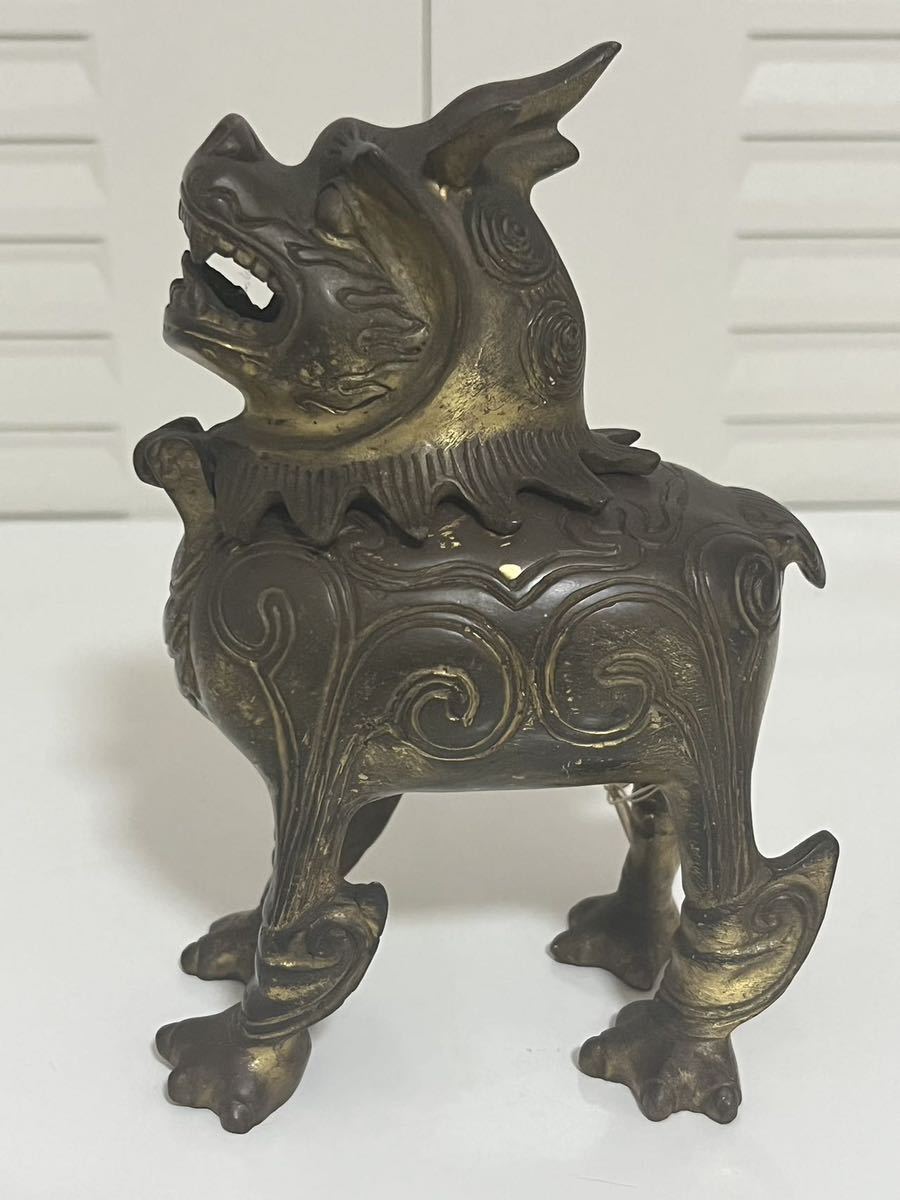 - 中国美術 明末清初 黄銅金 骨董品 香炉 貔貅 重さ663g