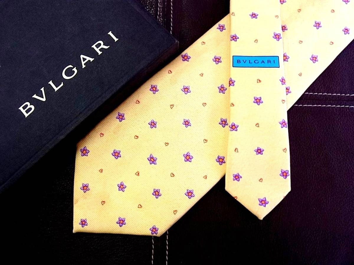 - 【在庫処分セール】5-9871z◆【BVLGARI】ブルガリ【ハート・花】「最高級セッテピエゲ」 ネクタイ ◆