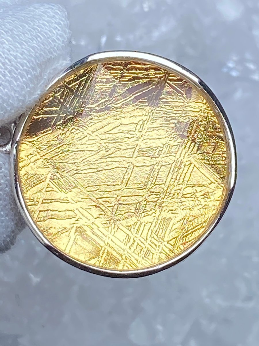 - 即決 0105J640 月に近い★【ゴールドギベオン隕石】★ 六芒星ペンダント 22x8mm(新品)