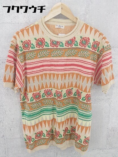 - ◇ peyton place ペイトンプレイス コットン ニット 五分袖 セーター F ベージュ マルチ * 1002800233045
