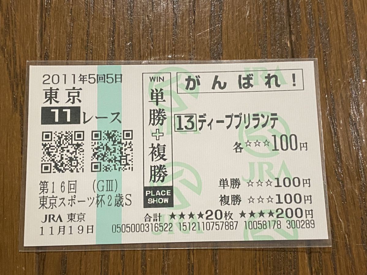 - 【001】競馬 単勝馬券 単勝+複勝 がんばれ! 2011年 第16回東京スポーツ杯2歳S ディープブリランテ 現地購入