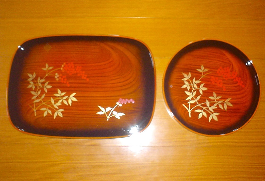 - 新品 お盆 2種2枚セット 丸型 四角型 花柄 トレイ