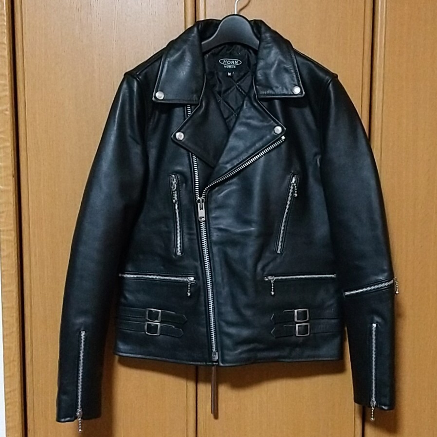 > HORN WORKS ホーンワークス ダブルライダースジャケット M 黒 ブラック ルイスレザー 666 ライトニング ロンジャン UKライダース