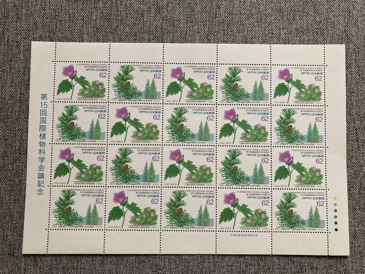 > ★未使用 第15回 国際植物科学会議記念 シラネアオイ コウヤマキ 平成5年 1993年 切手シート 62円20枚 日本郵便