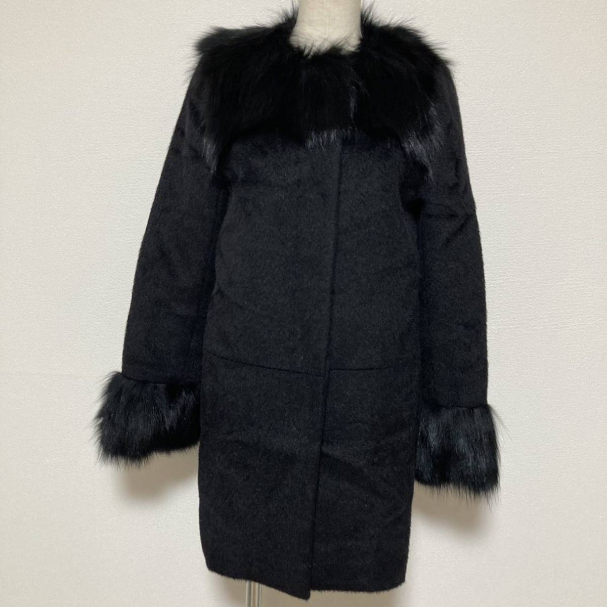 - Viaggio Bluウール アルパカ ファー コート ブラック リアルファー