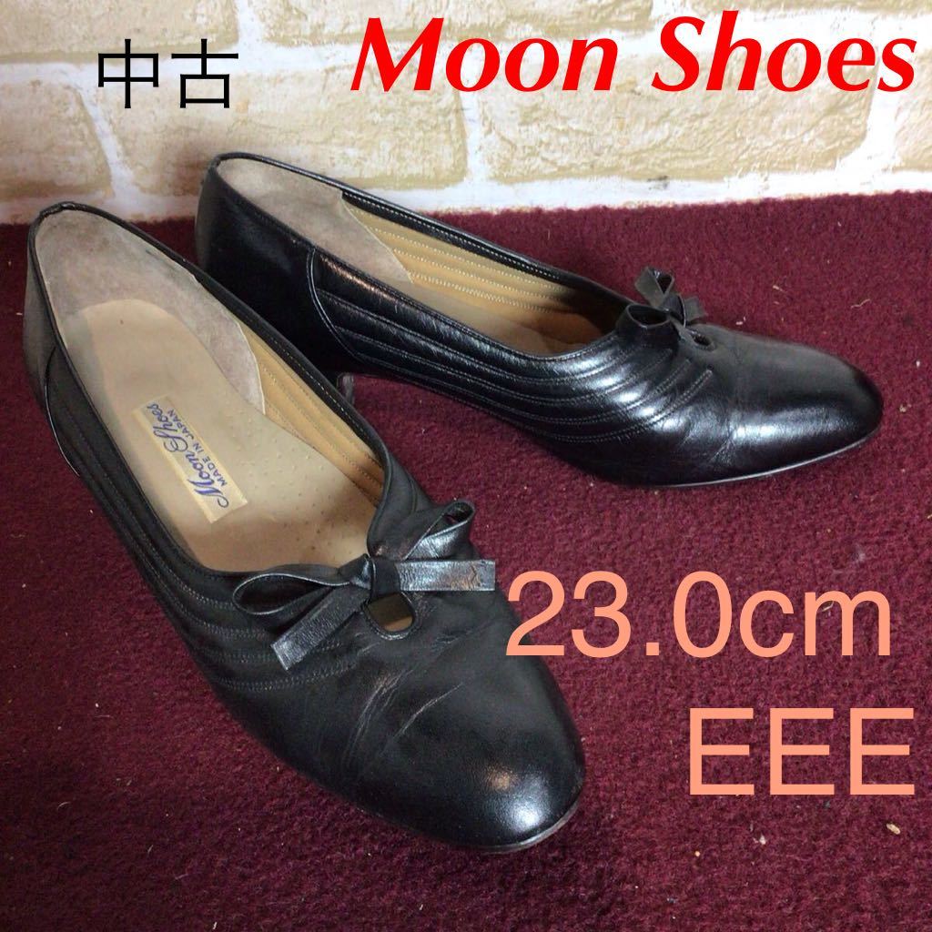 - 【売り切り!送料無料!】A-341 Moon Shoes!パンプス!黒!ブラック!23.0cm EEE!リボン!かわいい!おしゃれ!日本製!中古!