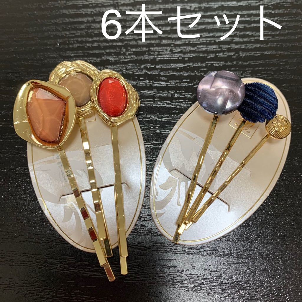 - レッド ビジュー ギャラクシー ネイビー ベロア ラウンド ヘア ピン 6本