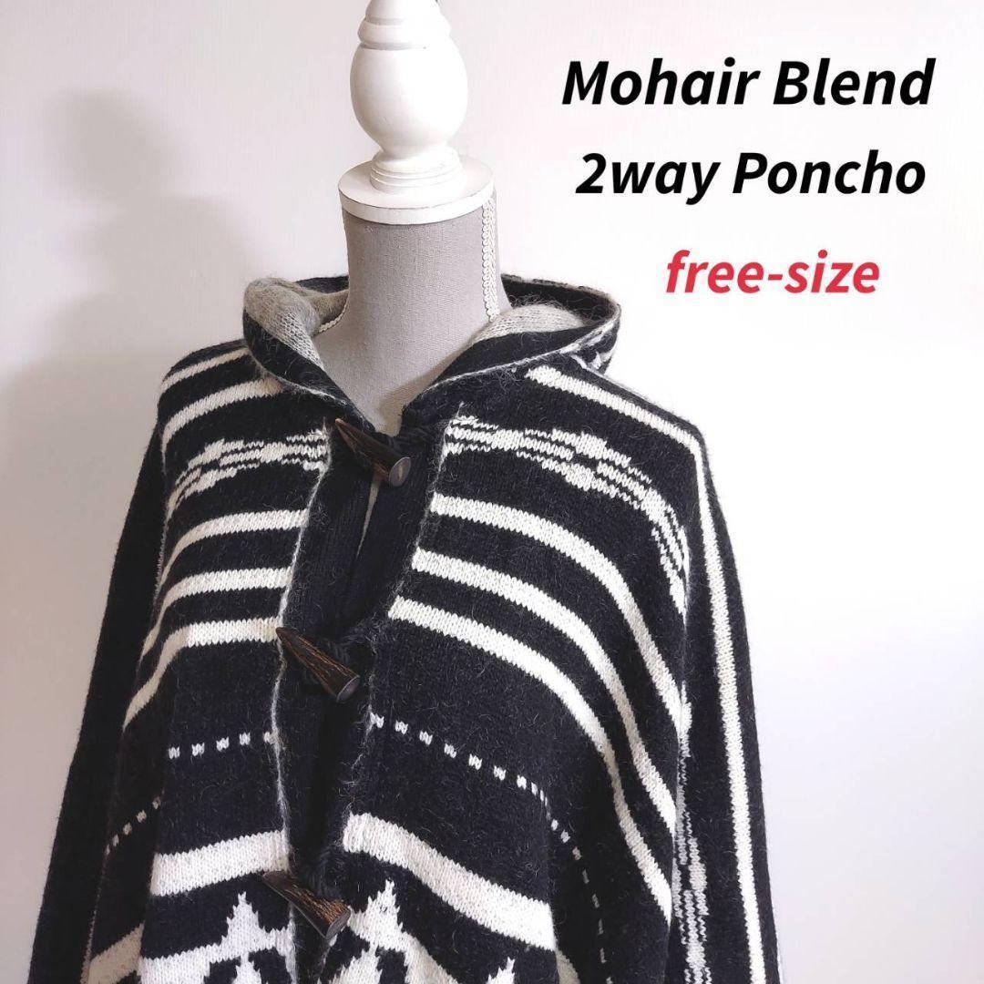 - スタニングルアー・モヘア混 2WAY ポンチョorドルマンスリーブ ニット パーカー 表記フリーサイズ 五点で送料無料 66720