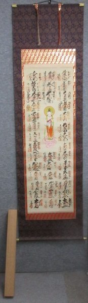 - 「真作」 掛軸 観音菩薩 [B33246] 長さ209cm 幅60cm 絹本 箱入り 床の間 飾り 古玩 古美術