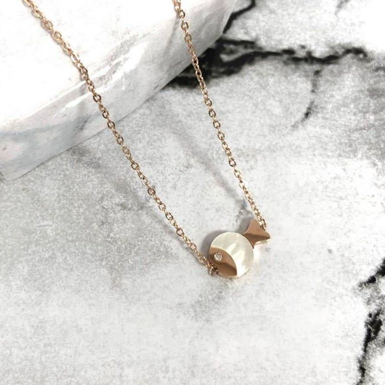 - ★送料無料★ ネックレス レディース アクセサリー 魚 魚型 さかな フィッシュ 夏 海 ホワイト 白 ピンクゴールド色