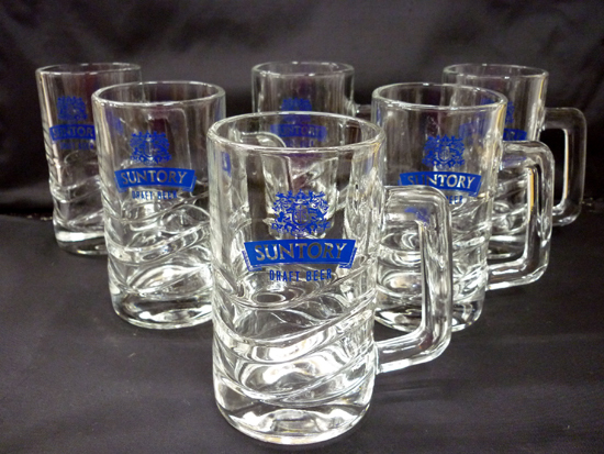 サントリーの旧ロゴが印象的なビアジョッキです。