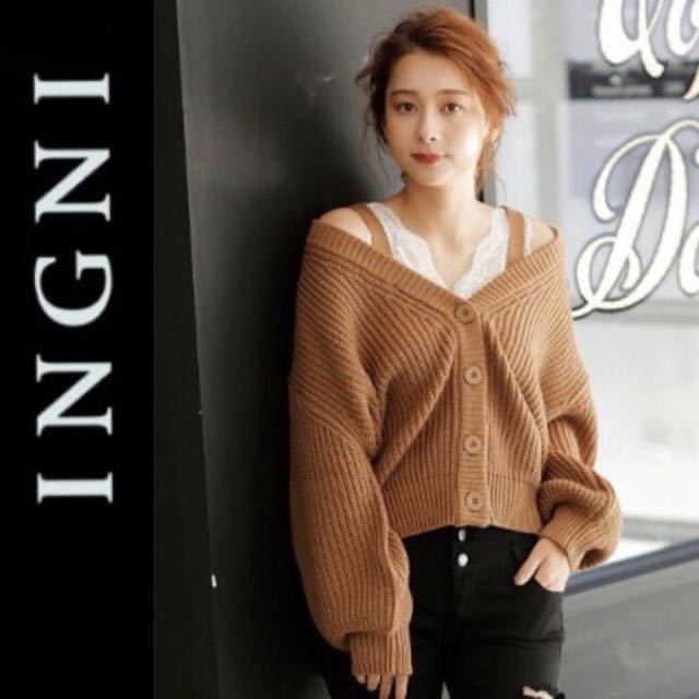 - 新品タグ付き☆INGNI 2WAY畦ニットカーディガン M キャメル イング アウター
