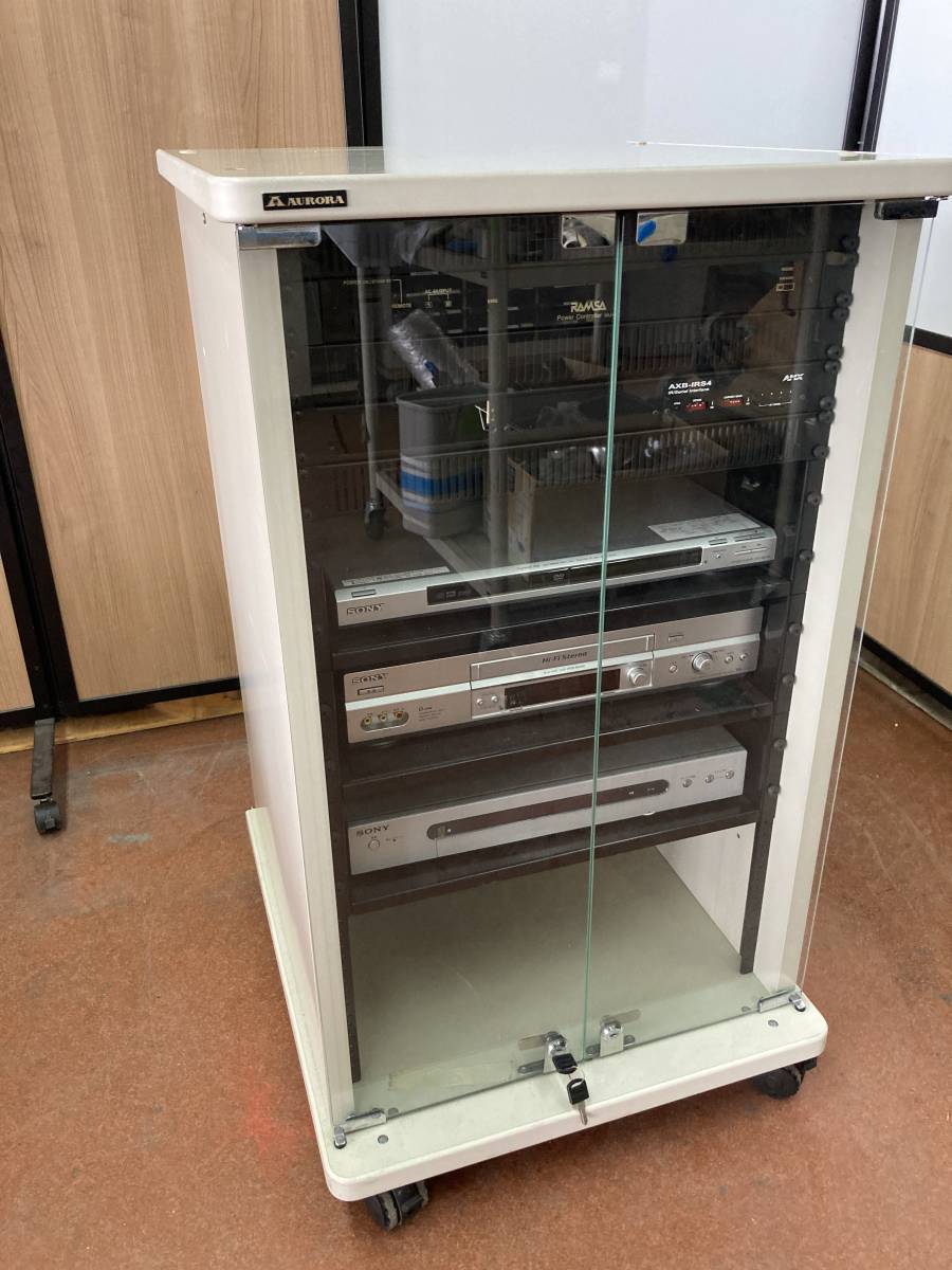 - AV機器セット 電源装置 DVD VHS アンプ他 キャスター付きラック