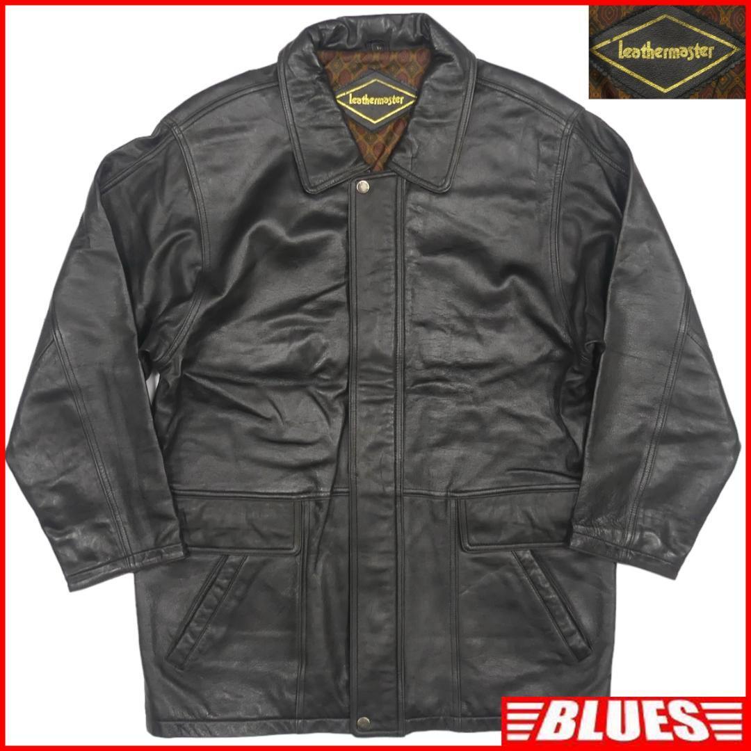 > 即決★Leathermaster★メンズL レザーステンカラーコート レザーマスター 黒 裏地総柄 本革 ジャケット 本皮 革ジャン