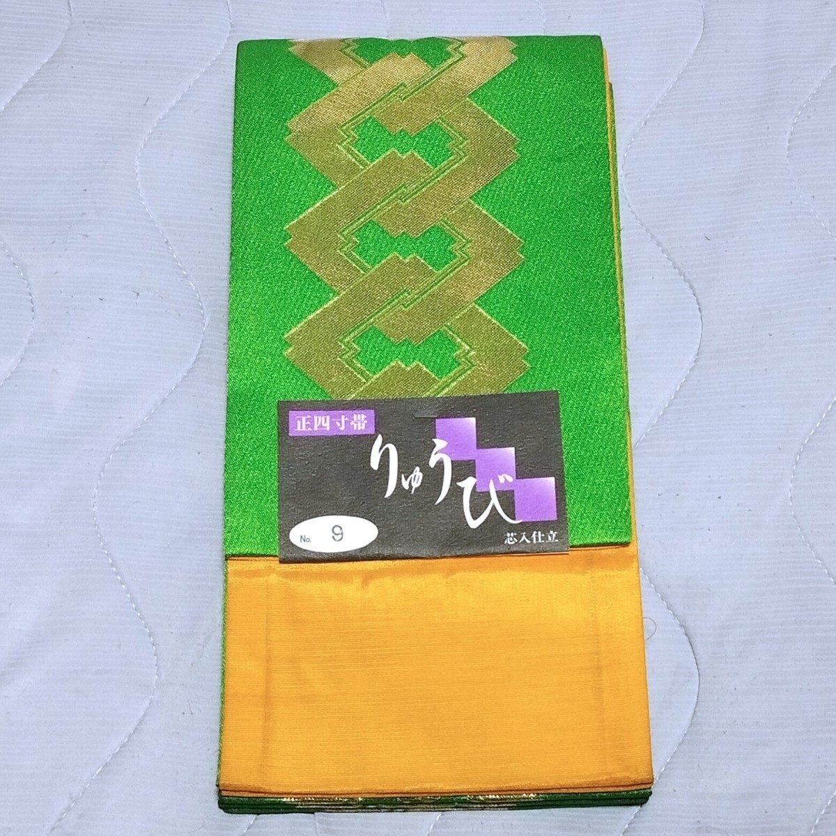 - 新品 半幅帯 リバーシブル 緑×黄 踊り帯 舞踊 日本舞踊 着物 浴衣