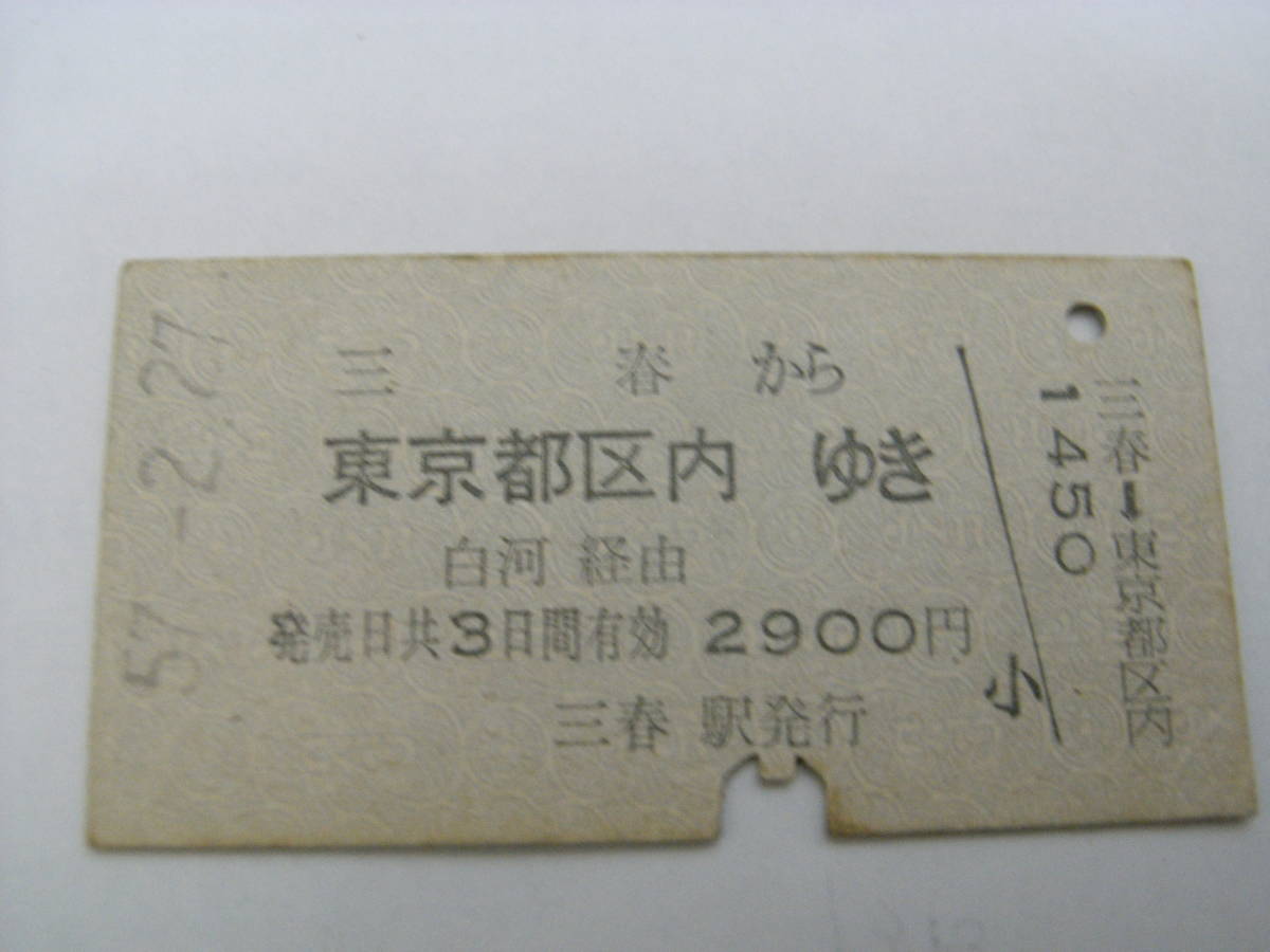 - 磐越東線 三春から東京都区内ゆき 白河経由 昭和57年2月27日 三春駅発行