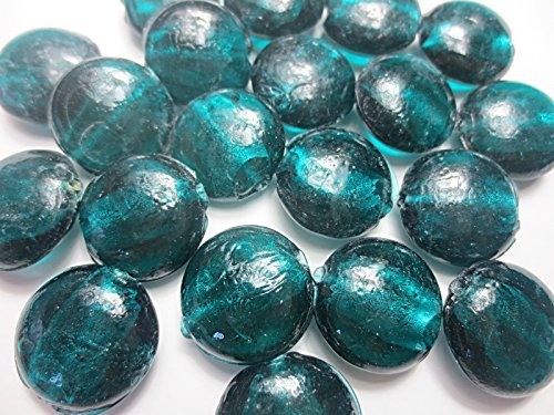 - 20個 ガラス ランプワーク ビーズ フラット形 シアン 箔入り 20mm 手芸材料のヒューイ h744