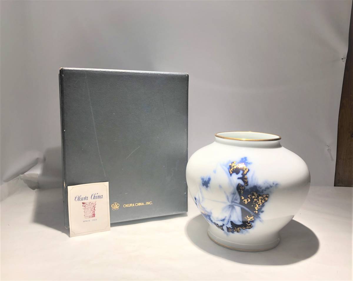 - X175●大倉陶園/OKURA/金彩花文花瓶/骨董品/大倉/有田焼/花瓶/花器/花生/花入/壷/飾壷/置物/ケース付き 現状品 重さ:約1178g