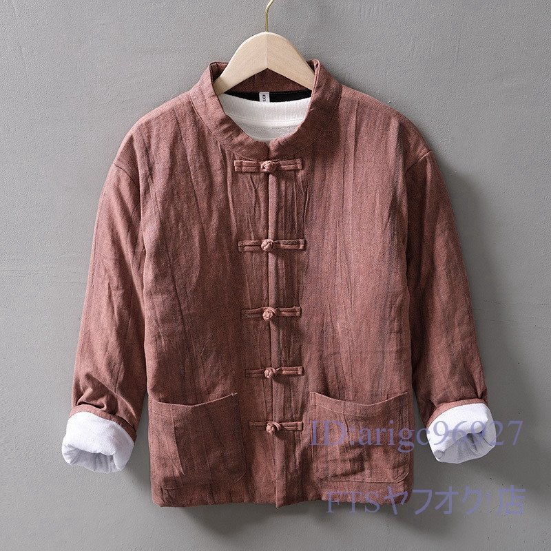 - T816☆新品中綿リネンジャケット チャイナジャケット 秋冬服 メンズ ブレザー*ブルゾン*トップス 太極拳服 武術 民族風 レッド系 XL