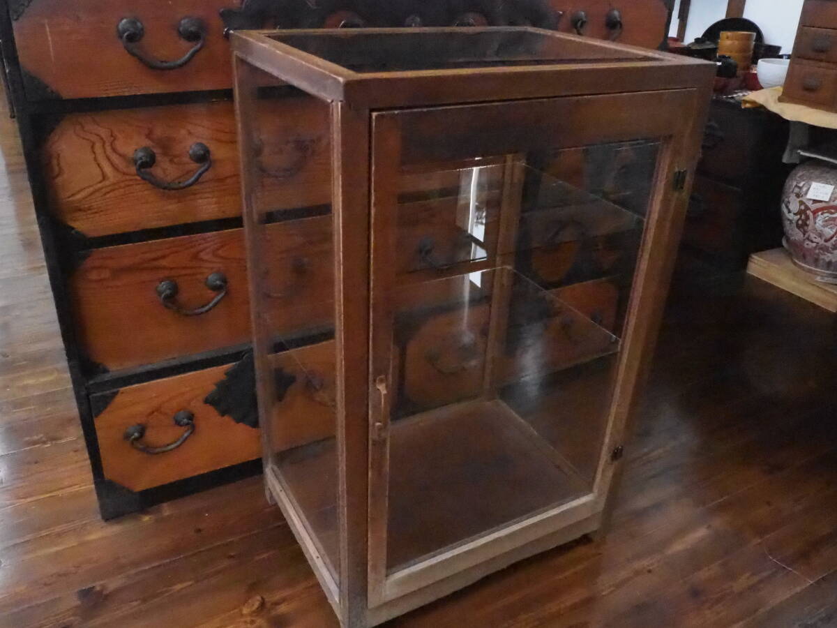 - 【古い着物屋のガラスケース】木製ショーケース食器棚煙草コレクションケース古道具本棚アンティーク骨董インテリア箪笥インダストリアル