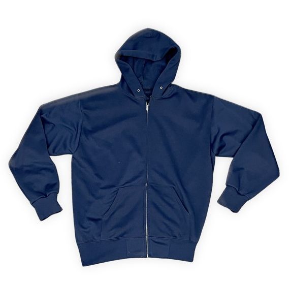 > 80's 米国製 UNKNOWN RN14666 ジップパーカ フーディ ポリエステル100% 裏地サーマル ネイビー サイズL [l-0891]