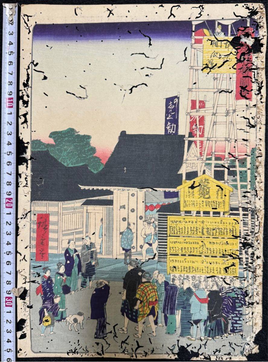 - 明治期/真作 歌川広重(三代) 「東京名勝図会 本所回向院」本物浮世絵木版画 名所絵 錦絵 大判 裏打ち