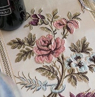 - LDL393# テーブルクロス テーブルランナー風のセンターライン 花柄の刺繍 エレガント ベージュ (長方形B 140×200cm)