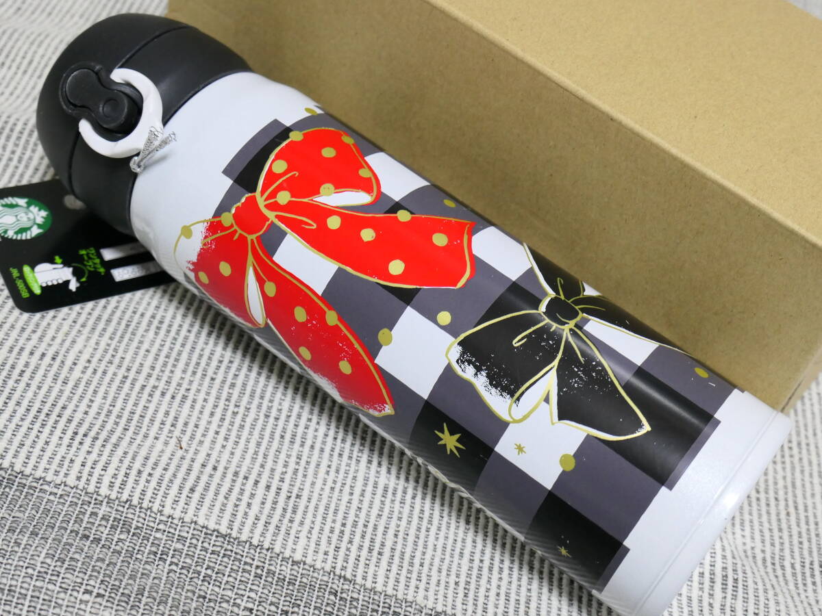 - 値下!スターバックス限定 黒、白、赤の大きなリボンがおしゃれ!500ml 未使用品 レア!
