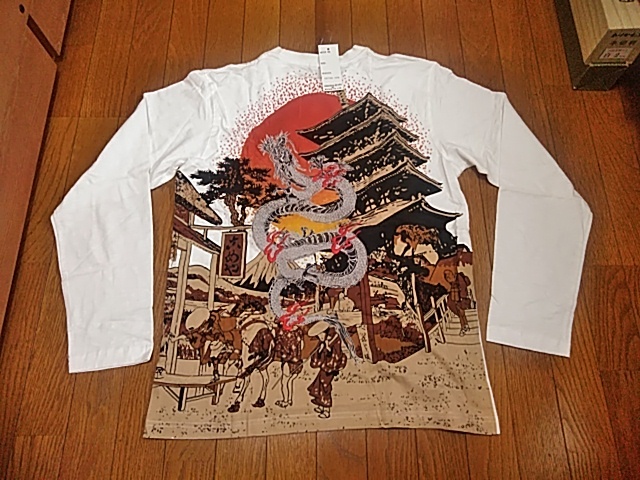 - 未使用タグ付き クロップドヘッズ 和柄 刺繍 Tシャツ 2XL XXL cropped heads 新品 赤猿 メンズロンT 長袖 ドラゴン 登り龍