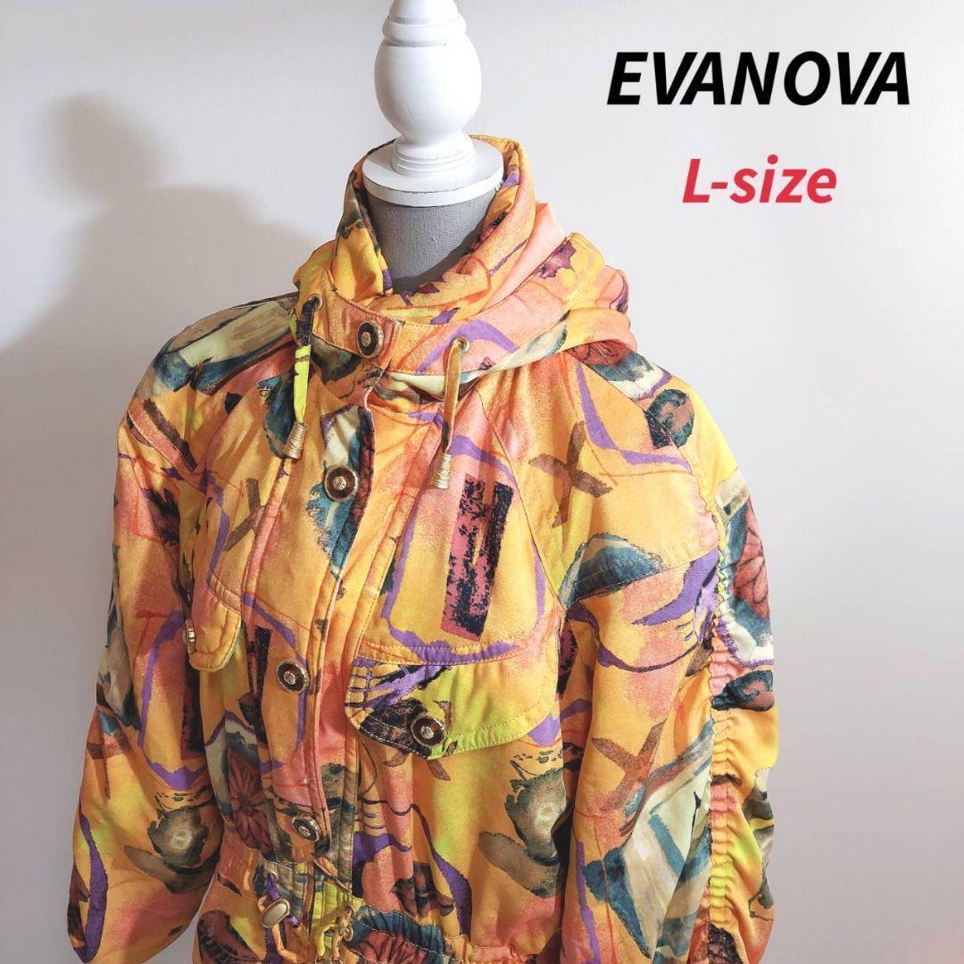 > EVANOVA 総柄 スキージャケット 中綿 オレンジ系 マルチカラー 表記サイズL 派手 平成レトロ mizuno 66974