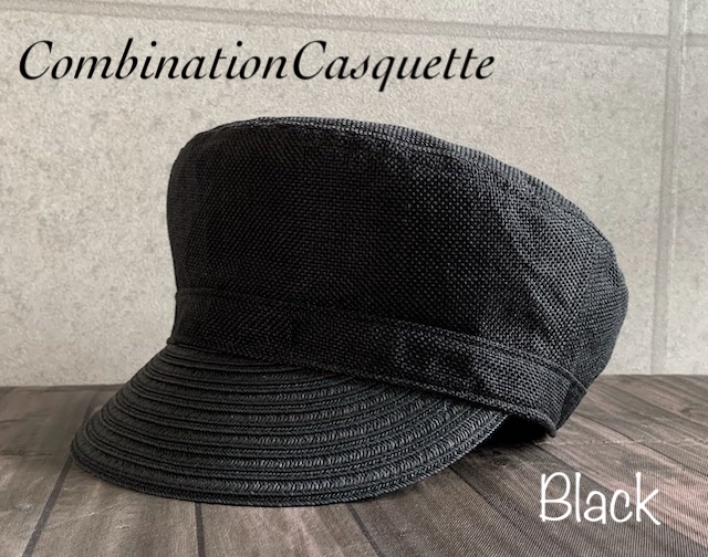- 帽子 コンビ マリン キャップ ストロー キャスケット 麻風 サイズ調整 日よけ 紫外線対策 春 夏 フェイクリネン ブラック