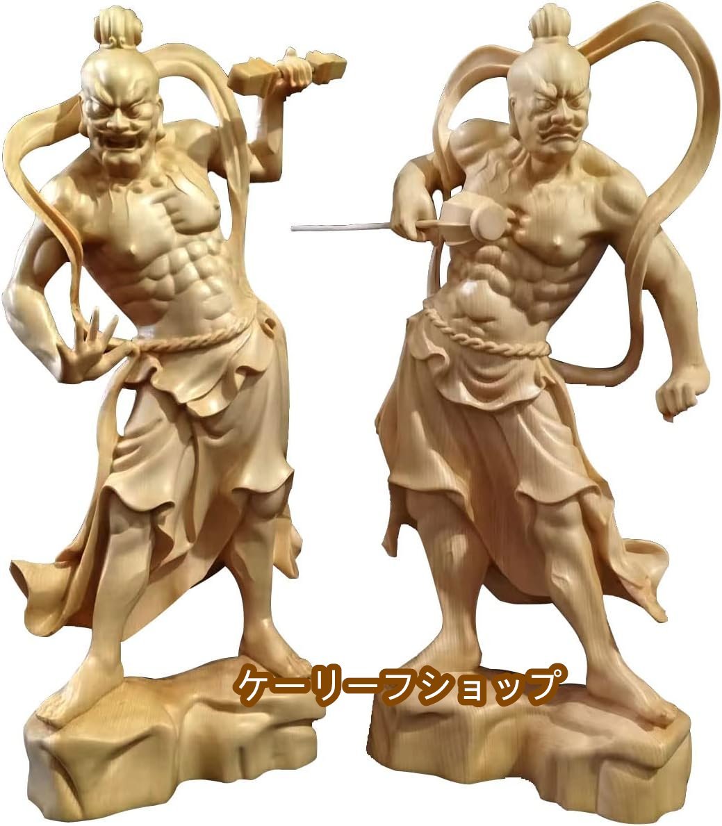 - 【ケーリーフショップ】木彫り 仏像【仁王像(金剛力士)】桧木(ヒノキ)総高さ30cm 仏像コレクション 阿形・吽形2種セット