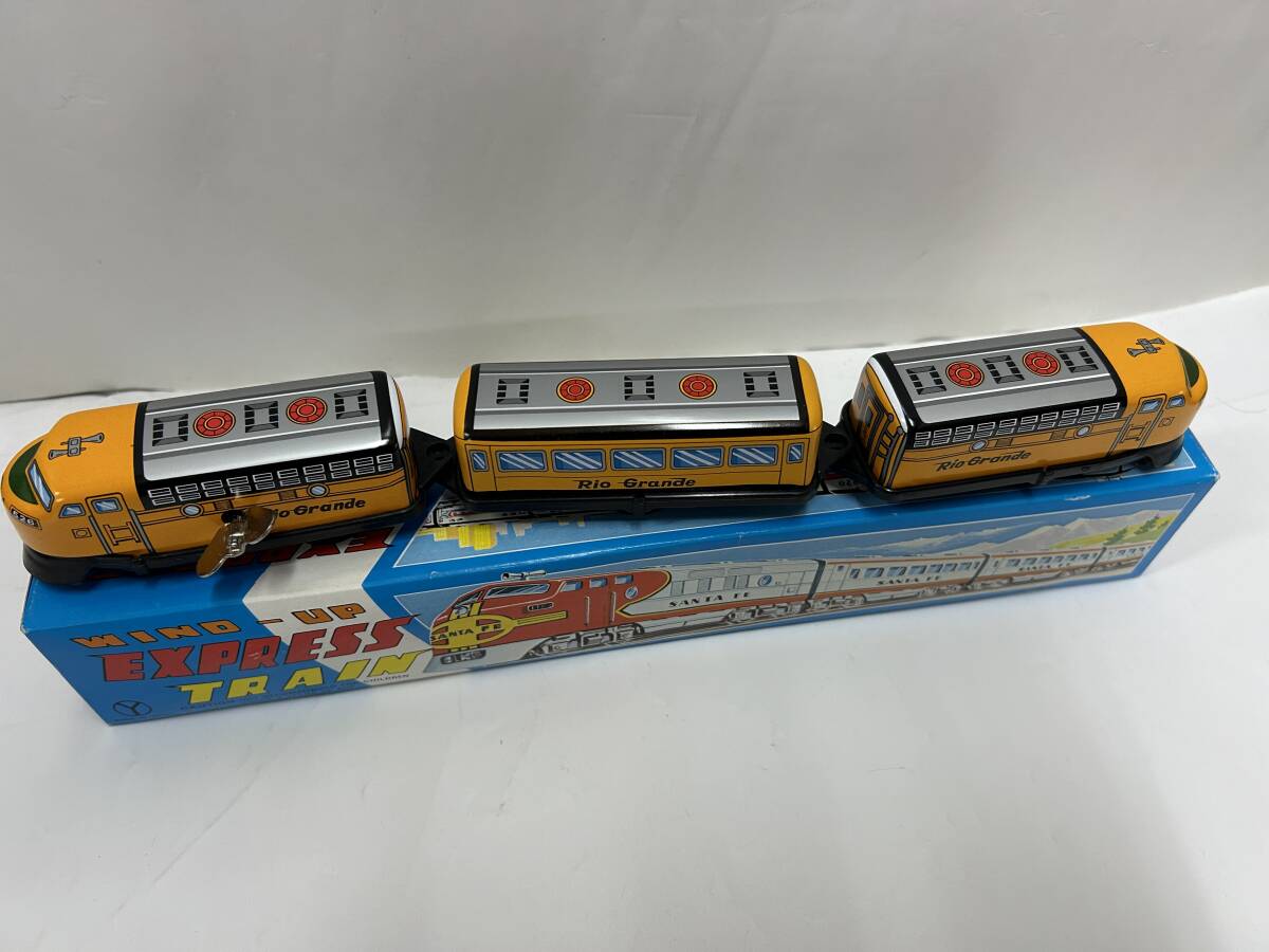 - レトロなブリキ WIND-UP EXPRESS TRAIN 3両連結 ゼンマイ式 エクスプレス オレンジ 日本製 新品