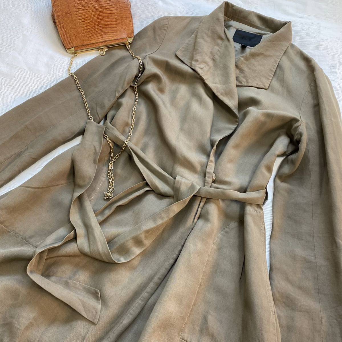 - アイシービー ICB ◆春夏 Aライン スプリングコート 麻 レーヨン ロングジャケット カーキ ブラウン 茶系 サイズJPN 9 y24030117