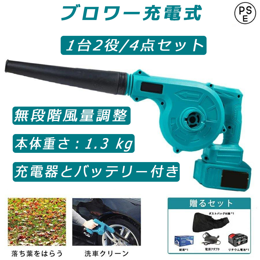 - ブロワー 充電式 18V コードレス 無段階風量調整電動工具 12000mah バッテリー*1 充電器付き 洗車専用 集じん機能付き 集塵 掃除機