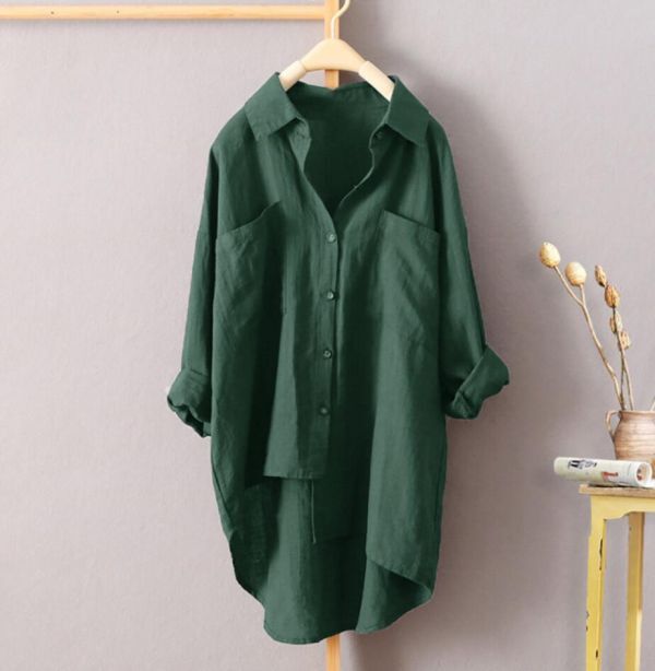 - 春秋 上品 ナチュラル ゆったり 素敵な 簡素 無地 大きいサイズ 長袖 シャツ チュニック / 緑
