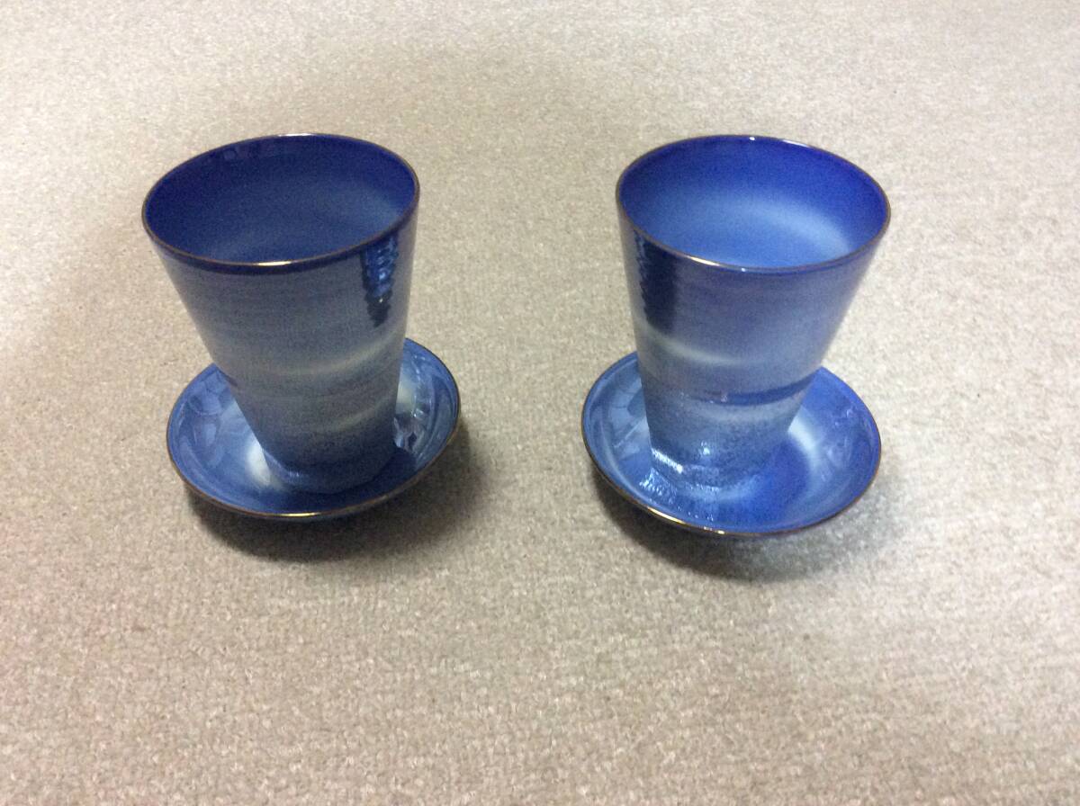- 新品未使用 特選有田焼 金彩 清秀 青色 グラデーションカラー カップ 陶磁器 コップ タンブラー 2個セット