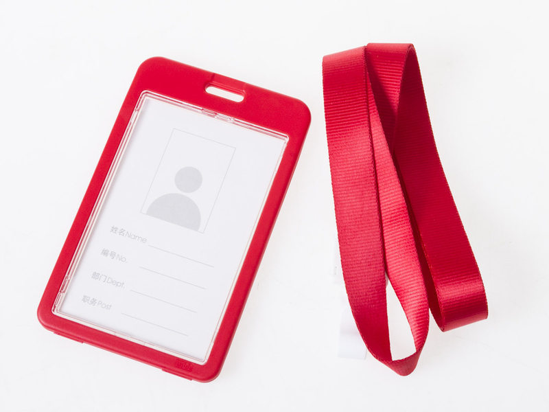 - LDL1086# 男女兼用 両面クリア IDカードネームホルダー 名札 ハードケース 縦型/ストラップ付き#レッド AZA-44766