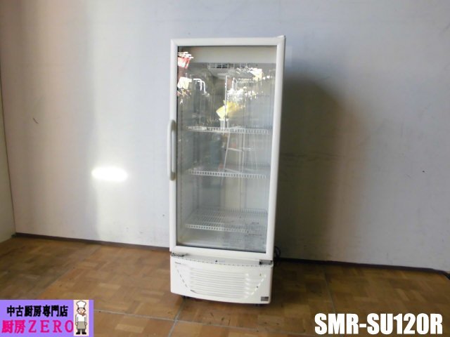 - 中古厨房 パナソニック 業務用 縦型 冷蔵ショーケース SMR-SU120R 252L 右開 壁ピタタイプ スイング扉 2重ガラス キャスター付 2018年