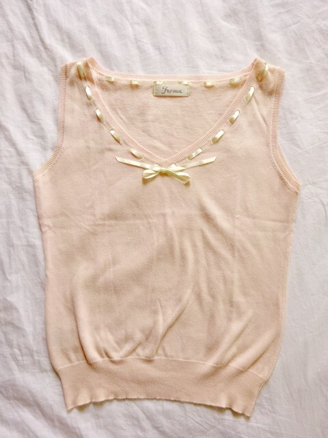 - ◆◇Feroux/フェルゥ リボン付き ノースリーブニットベスト ペールピンク パステルピンク◇◆