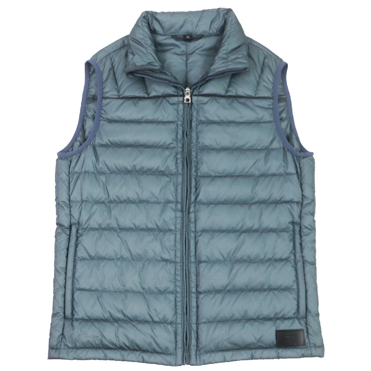 - 極美品 Dunhill ダンヒル レザー使い レザーロゴパッチ付き ダウンベスト ブルー Sサイズ相当 イタリア製 正規品 メンズ