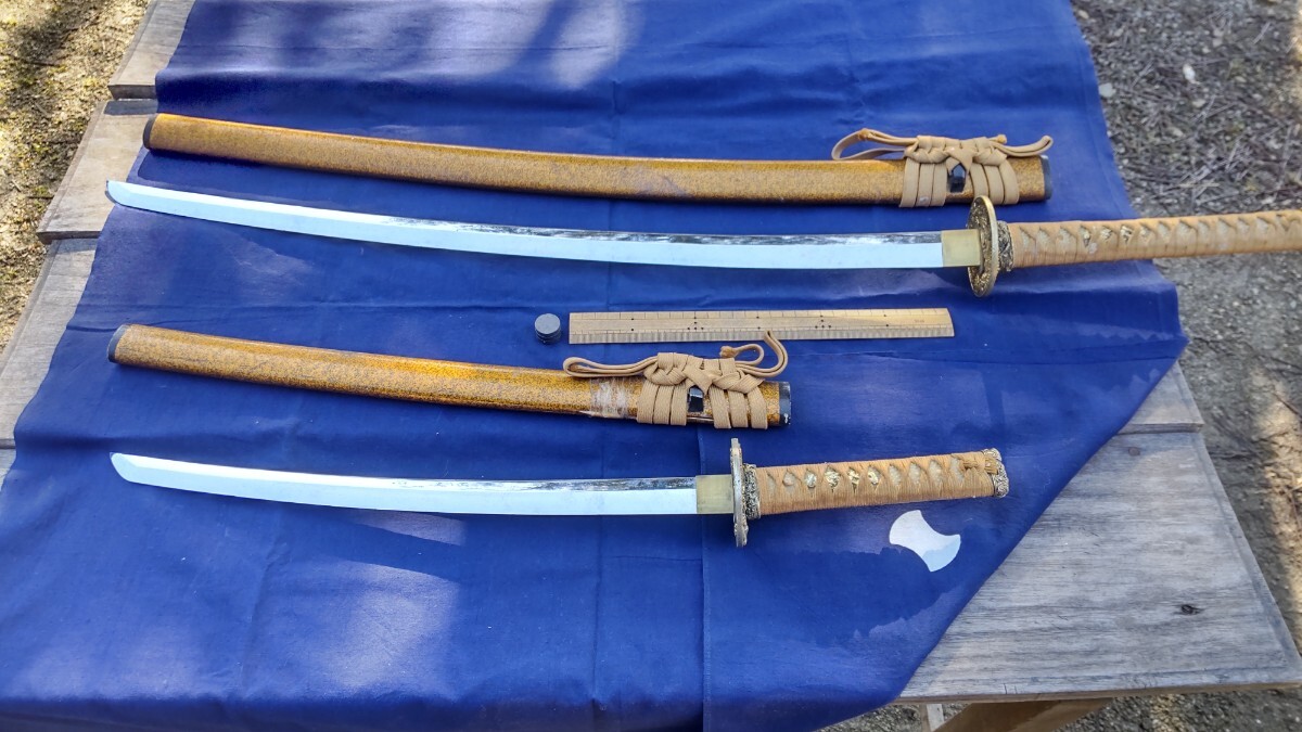 - 模造刀 大小2本 磁石反応無し 鞘にダメージ補修有り